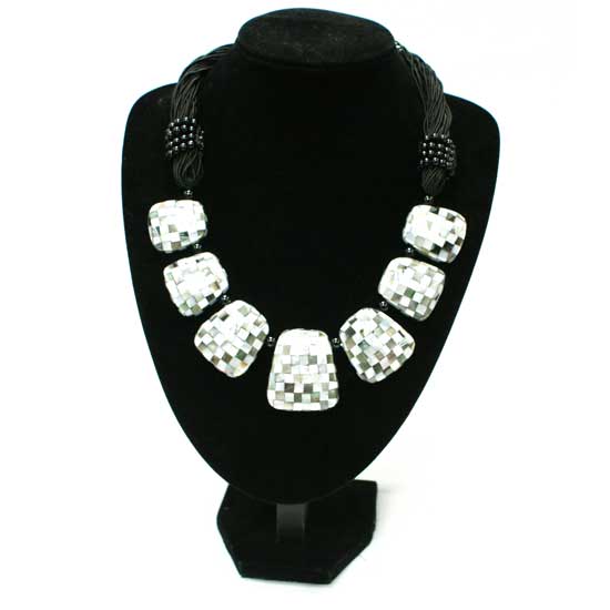 Pictured is a necklace made to fit the ladies’ latest fashion trend. The necklace is characterized by its shimmering and eye-catching large beads. The necklace pairs well with beachwear or other laid-back dressing.