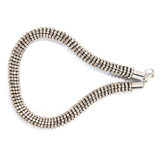 Add a touch of glitz to your neck with this alluring necklace. This ladies’ necklace boasts thick chain of glittery crystals to air aristocratic grace. The elegant necklace is finished a lobster clasp for secure wearing.
