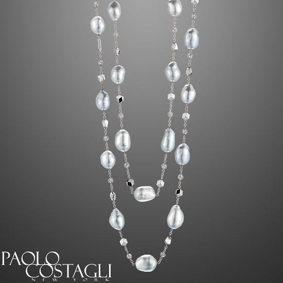 - 18k white gold necklace with "Brillante" (bright and brilliant in English) details, and South Sea baroque pearls.