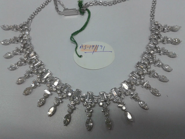 The displayed necklace is made of 18K gold and is embellished with dazzling diamonds. It can complement your look well and can be worn to different occasions. Flaunting a beautiful dazzling design, this necklace will make a fine addition to your jewelry collection.