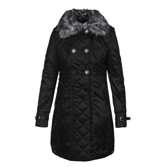 This ladies' overcoat features an all-black finish for a smart look. The collar is surrounded by fluffy materials for additional warmth keeping effects. The double breast design with special buttons adds a unique touch to the whole piece.