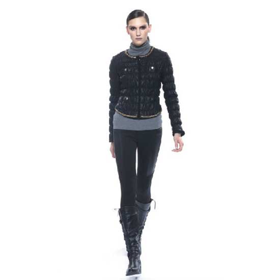 This is a fashionable ladies' jacket made of PU material in sleek finish. The jacket features a round classic collar, a zippered front and long sleeves. Coming with allover pleated design and metal buttons, this golden details add a decorative sense to this jacket.