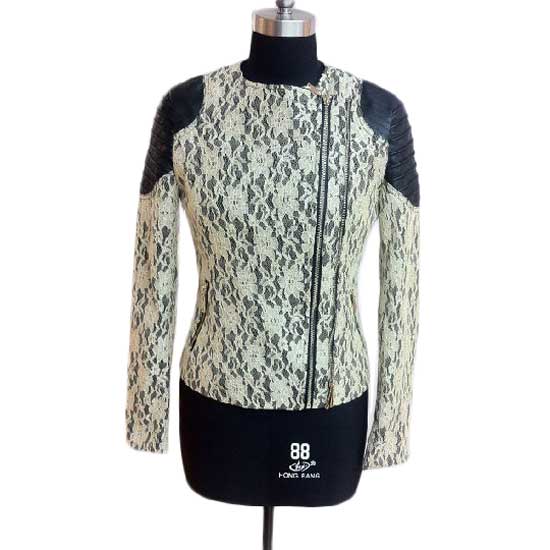 This is a ladies' PU jacket that comes with lace details. In a slimming style, this fashionable jacket features long sleeves and a side zipper. This high quality PU jacket is great for daily wear and is easy to take care of.