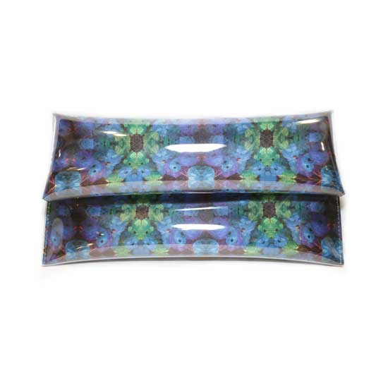 This ladies’ rectangular clutch sports a captivating floral print in blue and green tones. Made of PVC, it guarantees tough construction and exceptional durability. This fashionable evening bag is finished with a metallic closure.