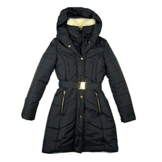 This is a ladies' padded coat with a trendy design. The golden parts highlight this black coat for a touch of style. This coat comes with an imitation rabbit fur lining for an extra-comfortable wearing experience.