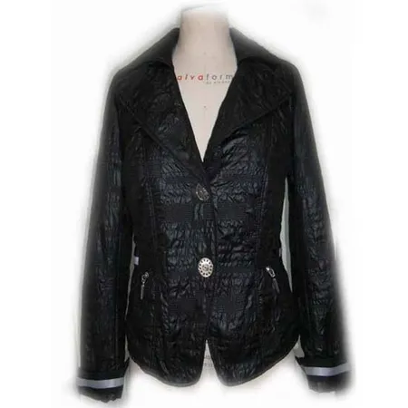 Look stylish in the showcased padded jacket. It is suitable for wear in autumn and winter. The jacket comes with a two-button closure. Featuring black color, the jacket can mix and match with many colors.