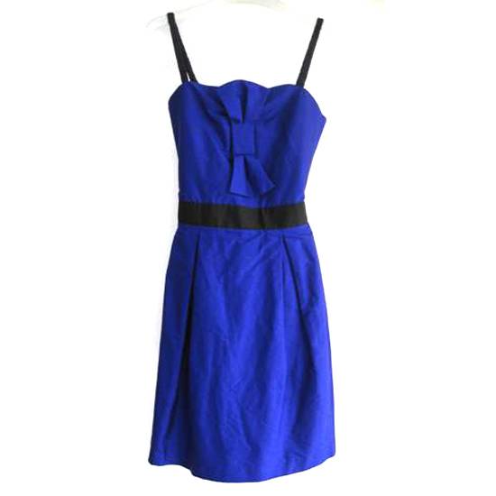 This is a ladies' slipdress for parties and leisure time. It is made of 100% silk fabric, which is smooth and soft to wear. The blue dress has black straps and waist belt with a low neckline. The fit cutting of the dress perfectly flatters your body shape.