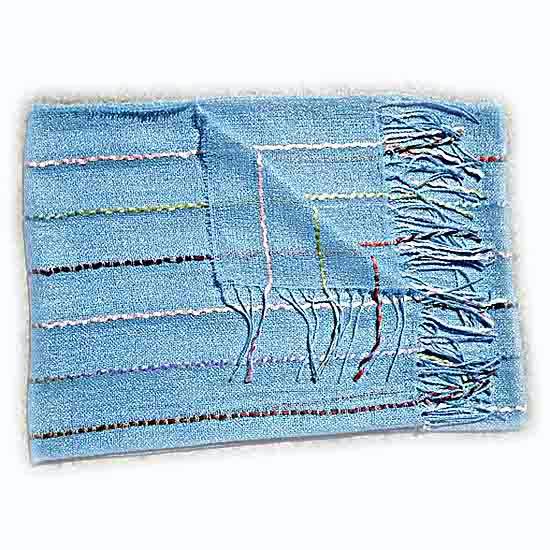 This stole features a casual mood with a pleasant light blue color. It is decorated with colorful stitching patterns. This stole provides you with great comfort in all seasons.