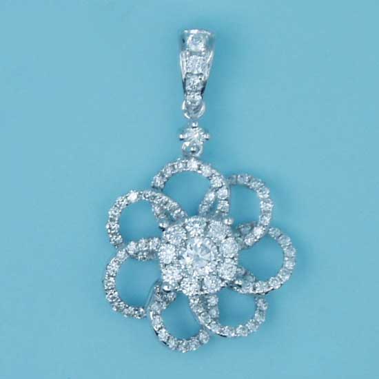 Presented is an exquisite pendant in an elegant flower shape. The pendant is centered with a brilliant diamond to please ladies’ eyes. Diamonds are embedded in all over the setting to look definitely fabulous.