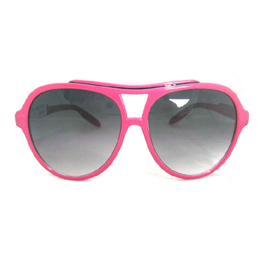 These ladies' sunglasses are designed in a bold pink color with dark tinted lens. The wide, conspicuous design flatters faces of any shapes. These trendy sunglasses serve to protect your eyes during outdoor activities.