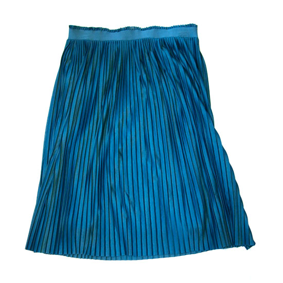 This ladies’ pleated skirt comes in peacock blue with a shimmering finish for a touch of uniqueness. The banded waist helps shape formfitting feminine silhouettes. Made of 100% polyester, this charming skirt promises gratifying wearing comfort.