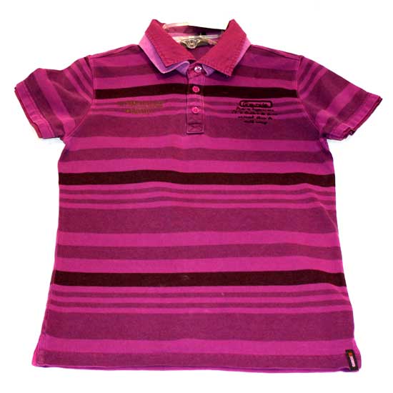 This ladies' polo shirt features stripes of various widths for a classic style. The double-layered collar with three buttons exhibit an exquisite design. This fashionable polo shirt is ideal for sports and outings.