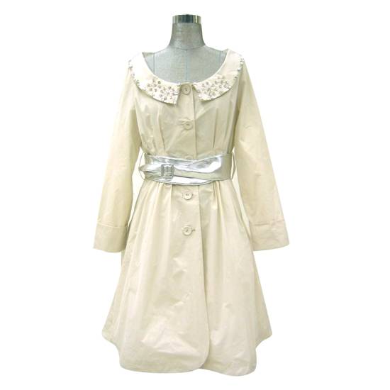 This is a trench coat designed for ladies. It can be wore either on the outside as a coat or plainly as a dress. A silver belt comes with the coat.