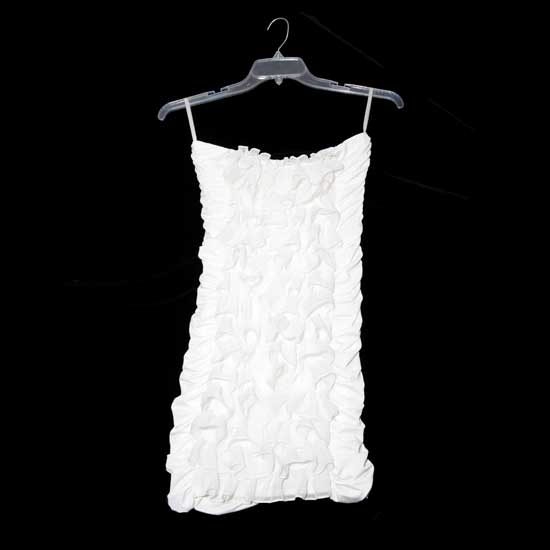 The ladies' dress features a rectangular neckline with thin shoulder straps. The creases on the body add a touch of decoration. This dress is great for parties and after-work drinks.