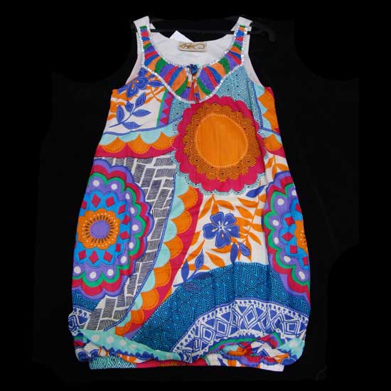 This exotic tunic features a sleeveless and U-neck design that is suitable for summer. It has floral patterns printed all over to deliver a cheerful look. The U-neckline is specially embellished with hand embroidery to add a more sophisticated touch. This colorful tunic is easy to match with full-length skirts.