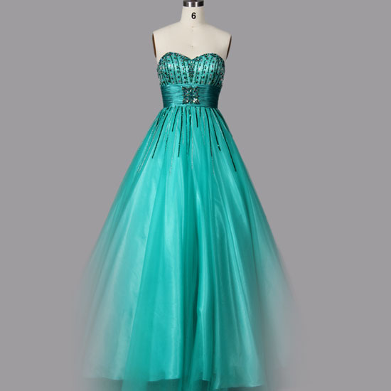 This is a ladies’ prom dress that comes in allover green for a vibrant look. It features a romantic and elegant low heart neckline. This stylish prom dress is an ideal choice to complete your fashion collection.