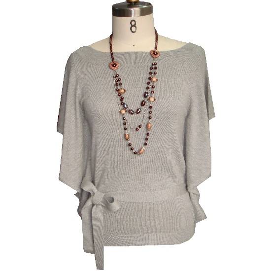 This elegant gray pullover comes with a classic boat neck with short butterfly sleeves. It has a fitted bodice and a waistband that looks flattering on any body shape. This top will lend a decidedly disheveled look to your weekend wardrobe.