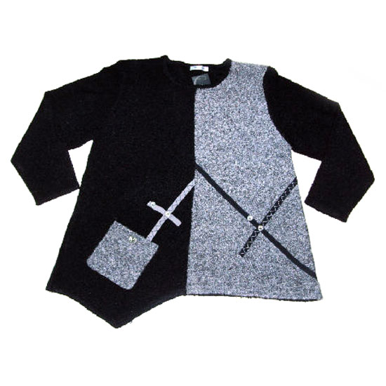 Available is a ladies' pullover coming with a stylish contrasting design. The asymmetrical hemline and single pocket with a button detail make it distinctive. This classic pullover is also finished with long sleeves and a scoop neckline.