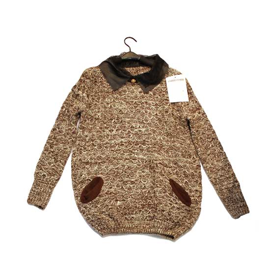 This is an elegant ladies' pullover that is made with a point collar, two side-entry pockets and long sleeves. It is finely made with exquisite details for a sense of attractiveness. This ladies' pullover is easy to mix and match with tight-fit pants for a trendy look.