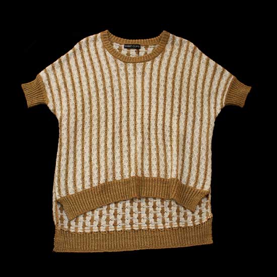 This is a ladies' pullover that comes with a two-toned design for a striking effect. It has ribbed details on the round collar, short sleeves and hems. This ladies' pullover is surely an elegant choice to complete your wardrobe.