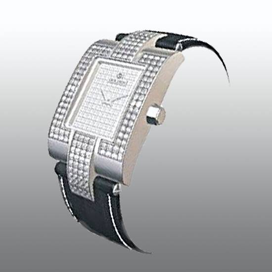 The ladies' quartz analog watch flaunts a rectangular bezel studded with stone ornaments for a glamorous touch. The black leather strap with white stitching detail offers a classic look. It comes with a simple stone-studded dial in two-hand design. Dress up your look with this stunning jewelry watch.