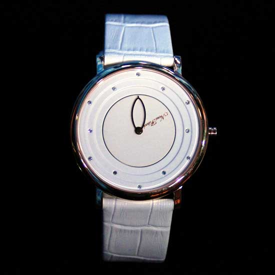 The ladies' quartz watch features a round stainless steel case with a white cow leather strap. It comes with crystal stone hour markers with a single watch hand. This quartz watch is an ideal accessory for your outfits.