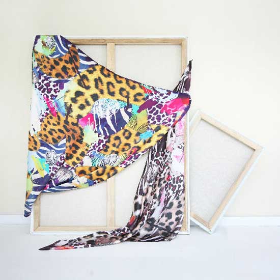 Highlighted is a ladies' scarf accented with attractive leopard patterns. The artistic color combination offers distinction and individuality. Add a layer of warmth in the chilly winter with this chic ladies' scarf.