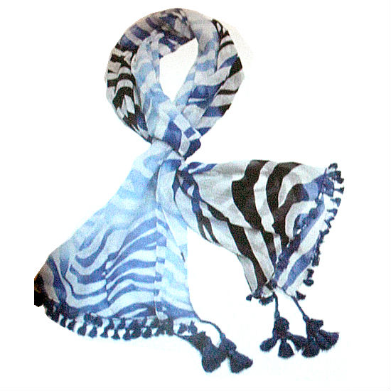 Spice up your plain outfit with this edgy zebra print scarf. With the ombre-effect on the zebra prints, this scarf is unique and fun looking. The cute fringes and tassels would bring on the hobo-chic style to your daily look. From navy blue faded into baby blue, this zebra scarf comes in a various shades for you to pair up with different outfit.