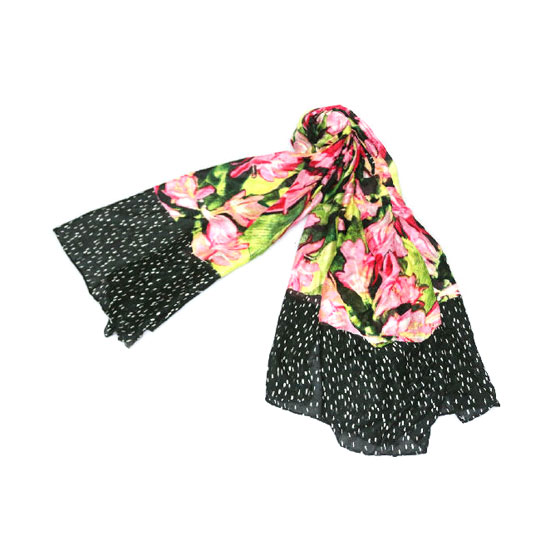 This is a ladies’ scarf that is made of quality material for a natural texture. The allover colorful floral patterns add a touch of elegance to the whole piece. This fashionable scarf is an ideal addition to complete your wardrobe.
