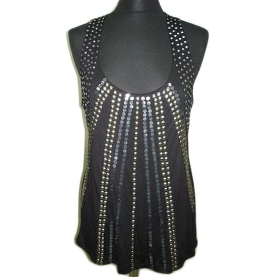 This stunning halter top features glistening sequins and studded details for a touch of glamor. Made of high-quality single jersey fabric, it offers a smooth, subtle sheen and incredible soft-touch feeling. Pair it with jeans for a chic, casual look.