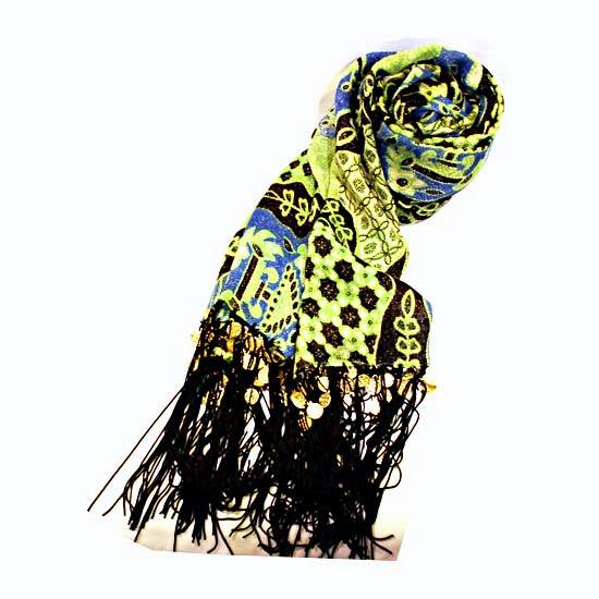 This ladies' shawl is features various artistic floral patterns. The shawl is nicely designed with sharp colors. The edges are specially embellished with extra long fringes and decorative buttons.