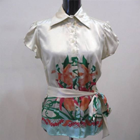 - This is a ladies' shirt that has a floral design across the lower half.