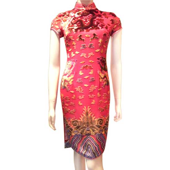 Pictured here is a ladies’ cheongsam showcasing the traditional Chinese beauty. Made of high-quality silk material, this red cheongsam ensures wearing soft and comfortable. The delicate embroidery with the dragon patterns is designed to create a sense of elegance.