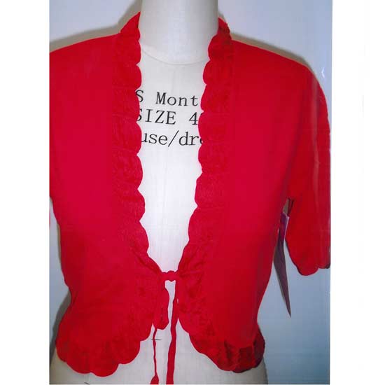 The ladies' cardigan comes in a vibrant red color for a modish look. It features a buttonless front highlighted by scalloped borders. This pretty cardigan makes a pretty way to complement your fashion ensemble.