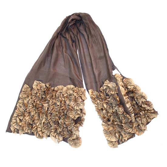 The sophisticated ladies' stole classes up your all-season outfits with its glamorous design in brown. The delicately trimmed polyester floral embroidery exudes an intense sense of elegance. The high-end silk fabric promises a soft texture for a blissfully comfortable fit. Show off your brilliant fashion sense by wearing this ladies' silk embroidered stole.