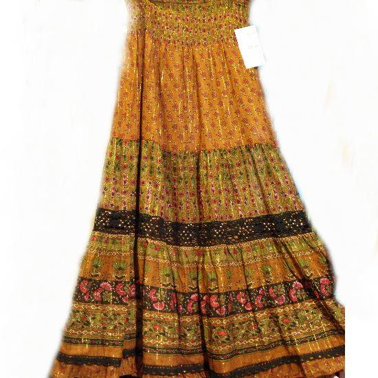 This stylish tiered skirt comes in long length, which falls just above the ankles. It features different floral patterns and embroidery in multiple colors. The thick elastic waistband adds a hint of uniqueness. Stay in fashion with this flowy skirt.