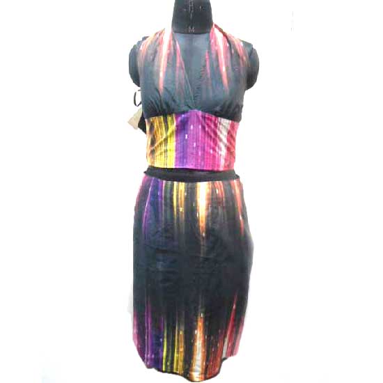 Featured here is a set of halter-neck top and a skirt. This ladies’ wear set is printed with the attractive colors for an eye-catching touch. Made of 100% cotton material, the set ensures wearing comfort and durability.