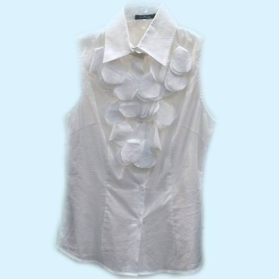 This ladies' sleeveless blouse features a button-down front with decorative drapes. This pointed-collar shirt also comes with subtly stitched armholes and a round bottom hem. The quality cotton material offers ultimate wearing comfort. The simple and elegant design makes it perfect for your workplace attire collection.