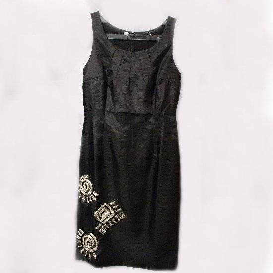 The sleeveless dress boasts a scoop-neck design with classy pleating gathered on the neckline. The unique embroidery on the bottom adds a flirty flair to this sleek evening dress. The quality material makes it perfect for wearing in the summer.