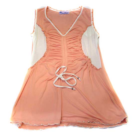 Featured is a ladies' sleeveless dress with a V-neck. The chest flaunts symmetrical horizontal ruffles. The front bodice features semi-transparent mesh, showcasing the inner parts subtly. The A-line bottom exhibits a graceful design.