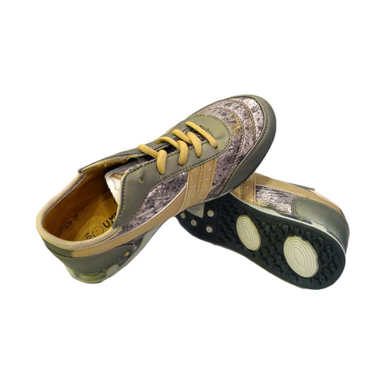This pair of ladies' sports shoes stands out from the rest with its comfortable yet fashionable design. Each piece features a sophisticated upper in different colors with a yellow lace. The shoe soles are made of quality TPR for wear resistance and durability.
