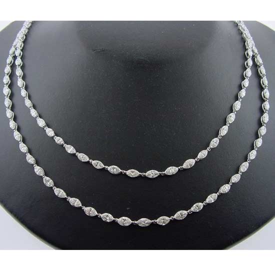 The necklace highlights a two-stranded design. It is fully encrusted with shimmering stones in oval for dazzling glamor. Bring your look to the next level with this splendid necklace.