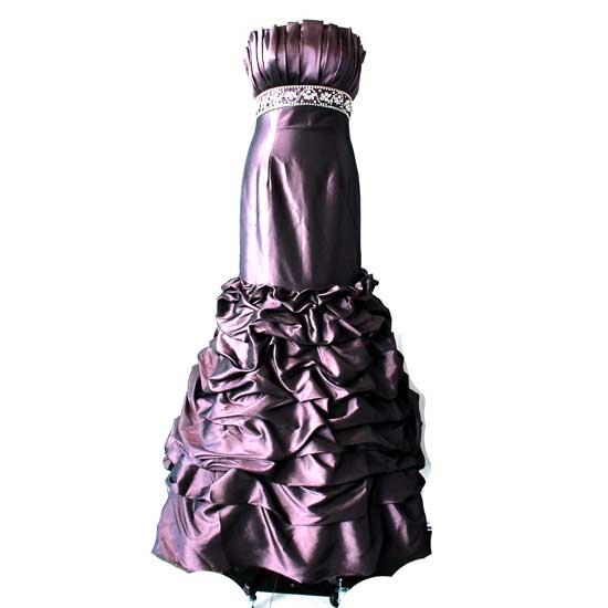 The sleek strapless evening gown boasts a flattering pleated bodice with an aesthetic empire waist, showcasing a romantic tinge. The ruched bottom creates rich texture and grand presence. Stand out in any evening occasions with this strapless ruched evening gown.