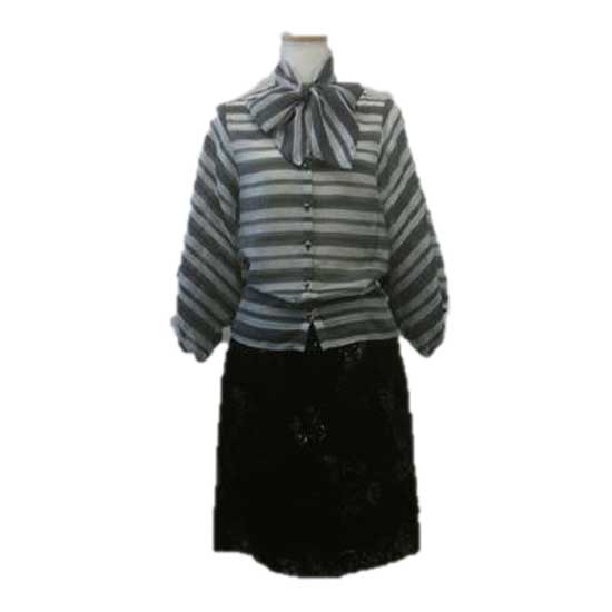 This ladies' blouse is finely printed with wide and narrow stripe patterns. The butterfly bow on the neck lends an elegant look to the blouse. This stylish blouse is completed with a buttoned front and long sleeves.