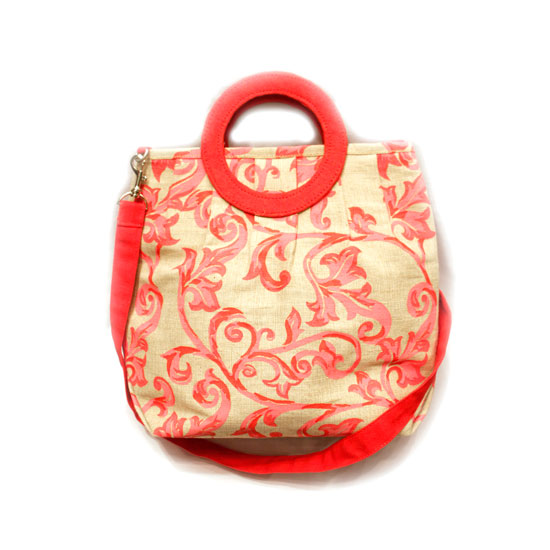The ladies' handbag touts a trendy and feminine design. The circular handles add a touch of uniqueness. The artistic floral patterns easily capture attention from the crowds.