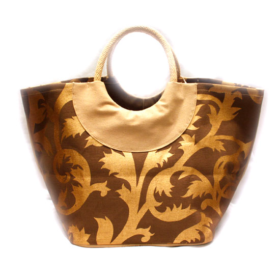 The ladies' summer handbag display a glamorous design with golden accents. The distinctive foliage patterns give a fashionable touch. The roomy compartment is big enough to carry your items needed on the go.