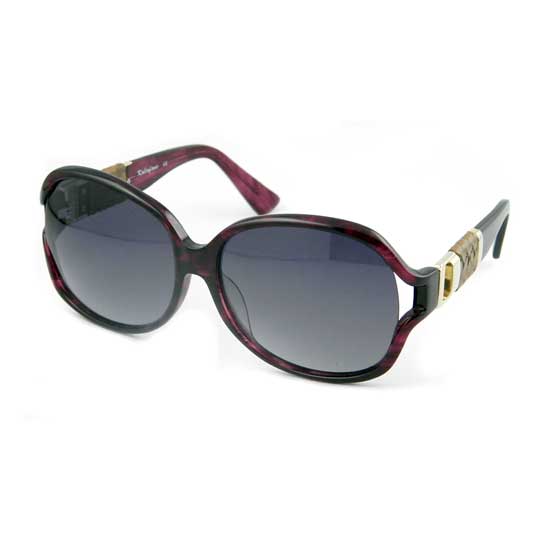 These ladies' sunglasses are designed with a purplish red frame with subtle patterns. Assorted embellishments are added on the temple arms to create a stylish look. The black tinted lenses protect your eyes and give the wearer a luxurious look.