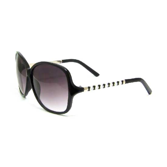 The displayed ladies’ sunglasses flaunt broad AC lenses for keeping burning sunlight at bay. The sunglasses are completed with a plastic frame for lightweight wearing. The slim metal temples are ornamented with spiral paintings.