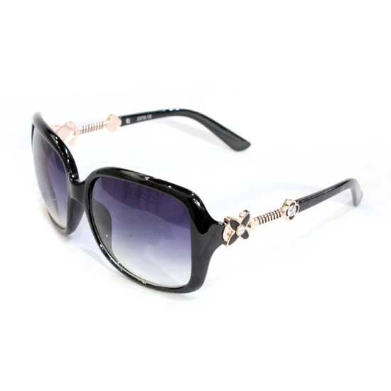 This pair of full-rim sunglasses comes with black rims and arms, gradient hued lenses and a saddle bridge. The arms with subtle patterns are constructed from nickel silver for a luxurious touch. This pair of elegant sunglasses is ideal for women.