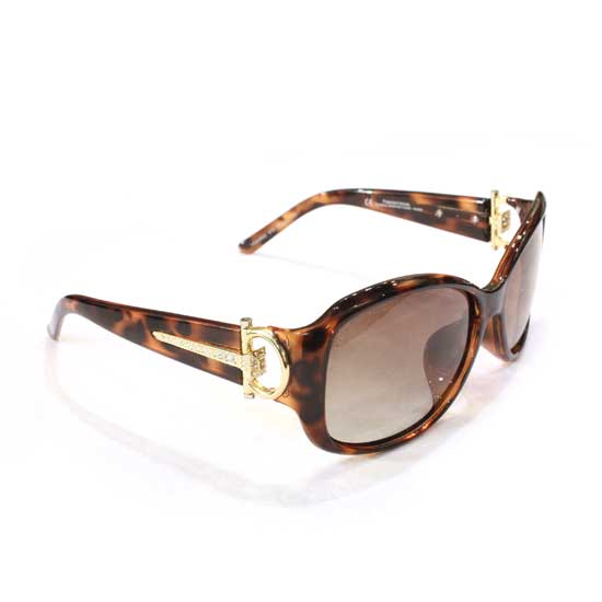 These fashionable ladies' sunglasses feature an amber-colored design. The stylish sunglasses feature an oval-shaped rim with polarized, anti-UV lenses. The golden-toned hardware on the temples is studded with tiny white stones for added appeal.